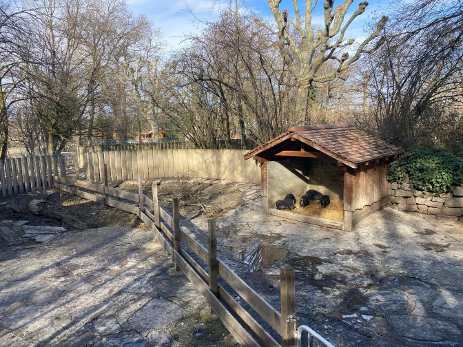 This is a small wildlife park in Geneva. We took the bus to Claire Vue, Petit Lancy and walked towards the park. Jack woke up and needed feeding and changing when we arrived there so we went into Café de la Tour. Unfortunately there were no changing facilities there (which surprised me because there were a lot of families and young children about). However I was able to feed Jack (and have a hot chocolate) in comfort.
