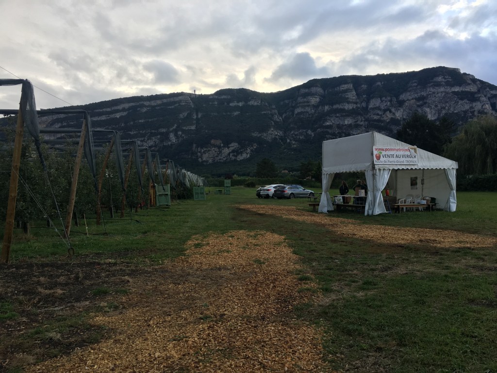 We took the number 41 bus to the stop ‘Chemin des Bois’ and walked up the road, past Landi and took the first left, following the yellow walking signs towards Troinex. We walked on small roads and paths along the edge of fields until we reached the apple orchard. The views were lovely and the surroundings were very peaceful.