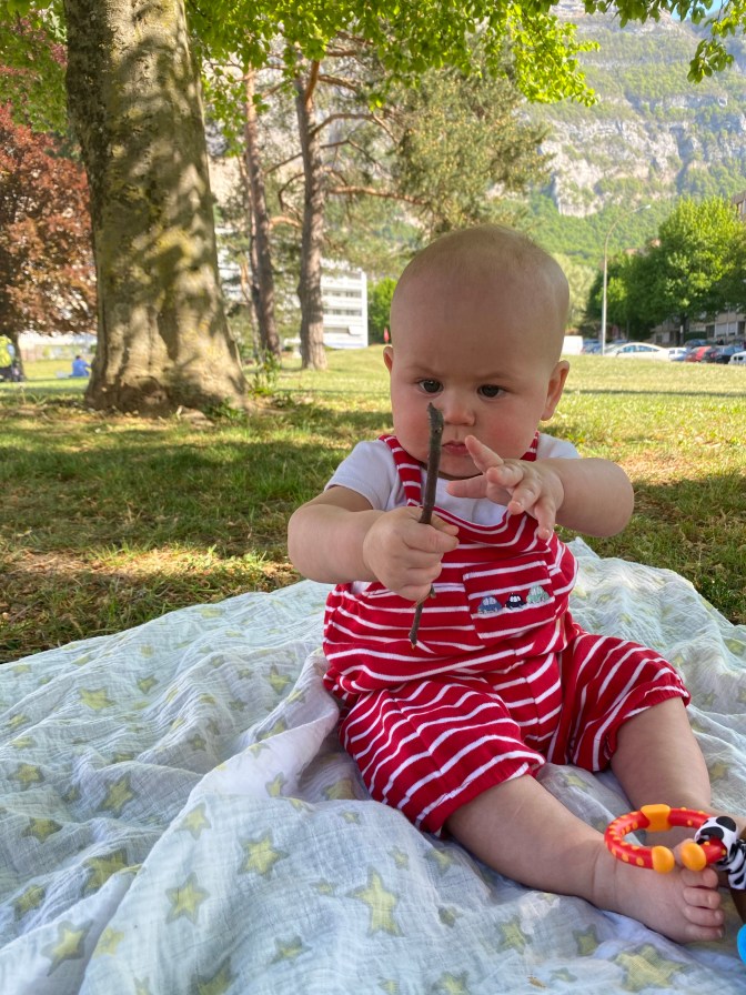 In Switzerland the advice is to start solid food at 4 months (Perhaps due to the short maternity leave of 16 weeks!). In the UK the advice is to start at 6 months. In the end, we decided at 5 months old that it was time to introduce small amounts of food, more for ‘fun’. (As an aside note, once he started on solid food, he began to sleep 11 hours straight at night, every night. Coincidence? Maybe, but I’ll take it!)
