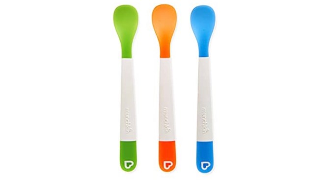 Sometimes we spoon feed him if we don’t want to make a big mess, but other times he feeds himself. He loves putting anything in his mouth, so as soon as I put a spoonful of vegetables in his hand, he knows what to do! We really loved using these munchkin spoons. They are a good length and the spoon part is not too deep. (I have tried others and he couldn’t get all the food out of them).