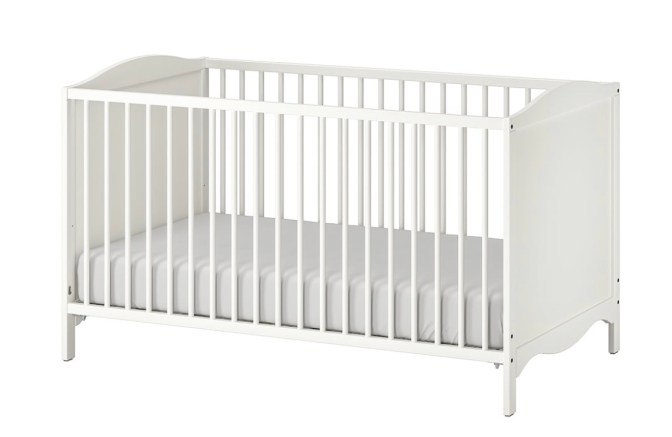 Once our son started to learn to roll (at about 3 months old) – it was time for him to move out of his bassinet and into his cot. We bought this cot from IKEA because it has three different settings: you can have the matress high up or low down (once they can pull themselves up to stand, it must be on the low setting) and you can remove the side once they are a toddler or bigger. Jack has done some of his best snoozing in this cot! We bought this mattress and these sheets to go alongside it. He still sleeps in a sleepsuit, but we have ordered the cot sized duvet, pillow and sheets for when he is bigger.