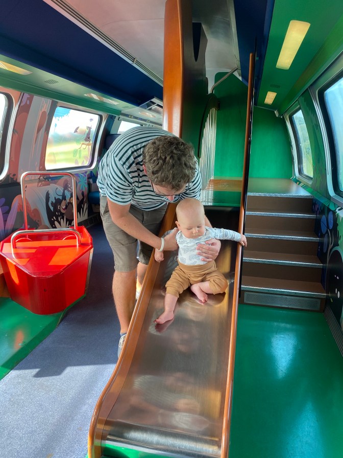 After much deliberation, we decided to do the Narcissi Walk from Les Avants. We didn’t want to go too far, and this train journey was only 1 hour and 40 minutes from Geneva. Talking of trains, we love SBB and their child friendly sections! Jack loved playing in this area as we weaved our way through the vineyards along the shores of lake Geneva.