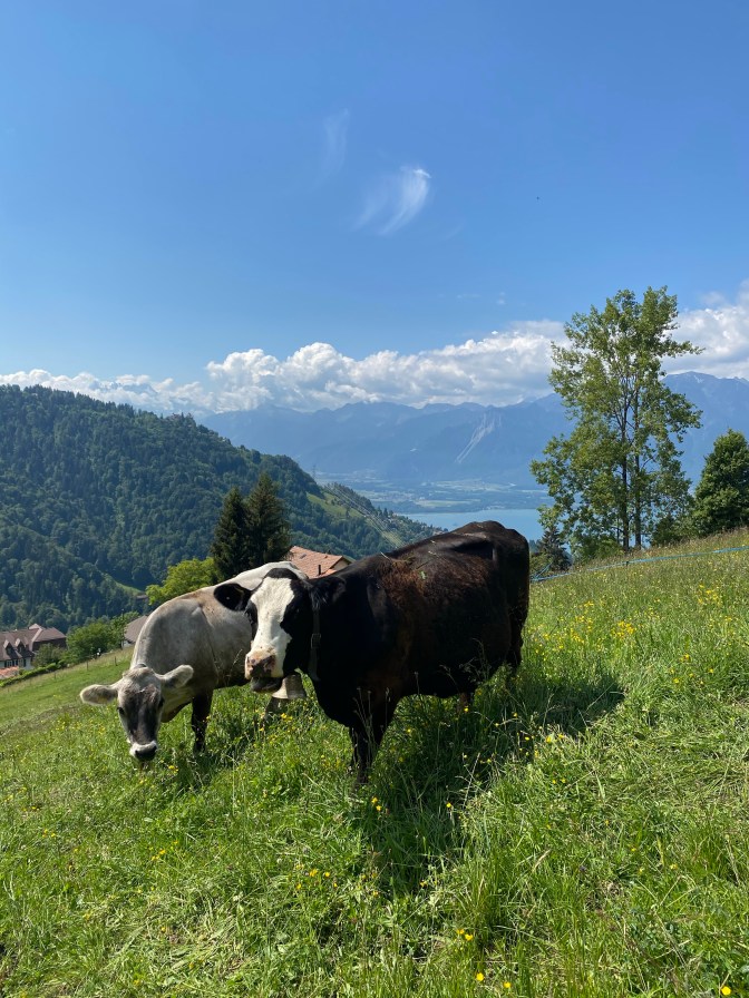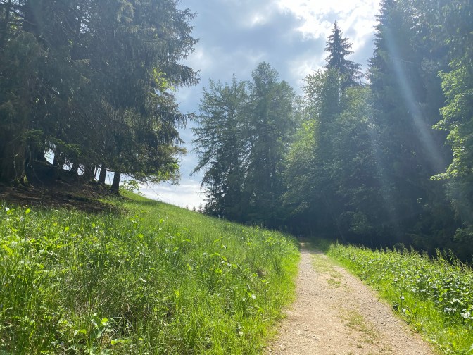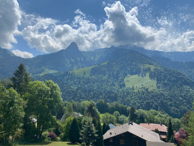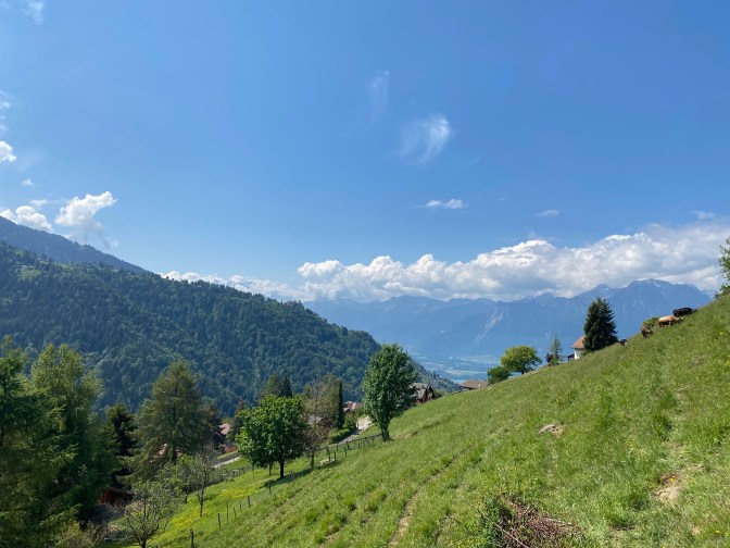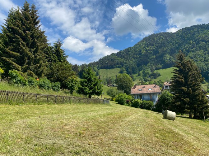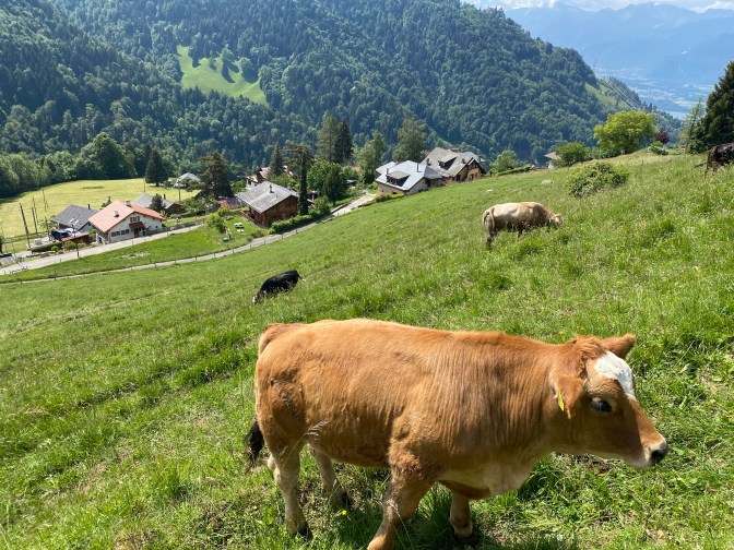 The train from Montreux to Les Avants had beautiful views, and when we arrived in Les Avants we were greeted with the spectacular Dent de Jaman. Les Avants is a small village, with a couple of cafes/restaurants. There is usually a funicular running from the station to Sonloup, but due to coronavirus, these are not running until mid-June.