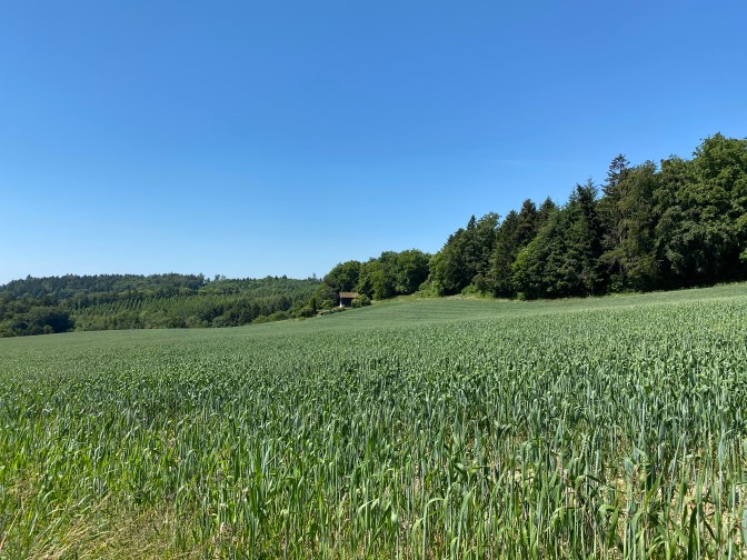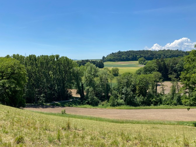 The walk took us along a very small road through fields and vineyards. It was slightly uphill from Yens to the forest, but nothing too arduous.