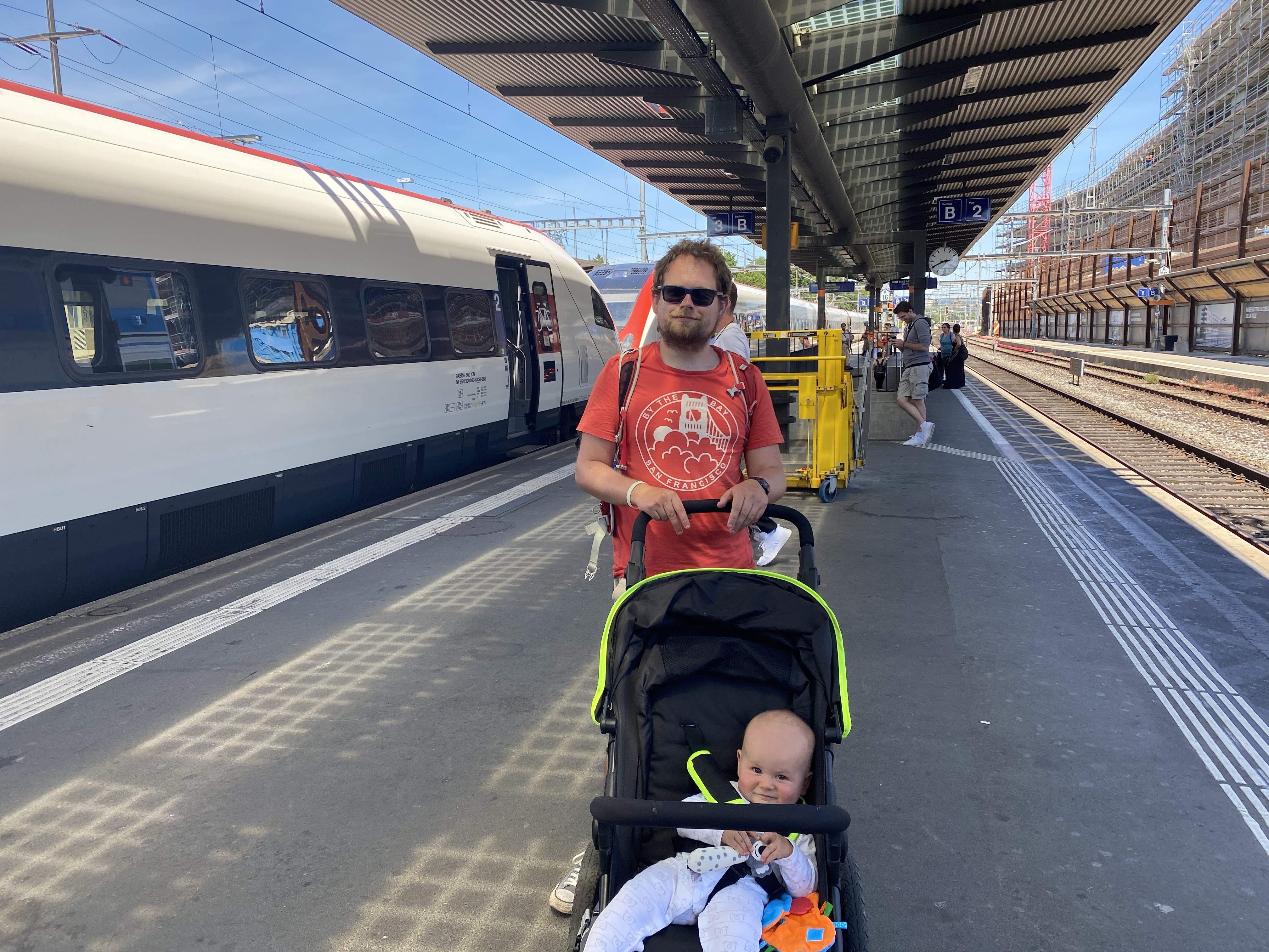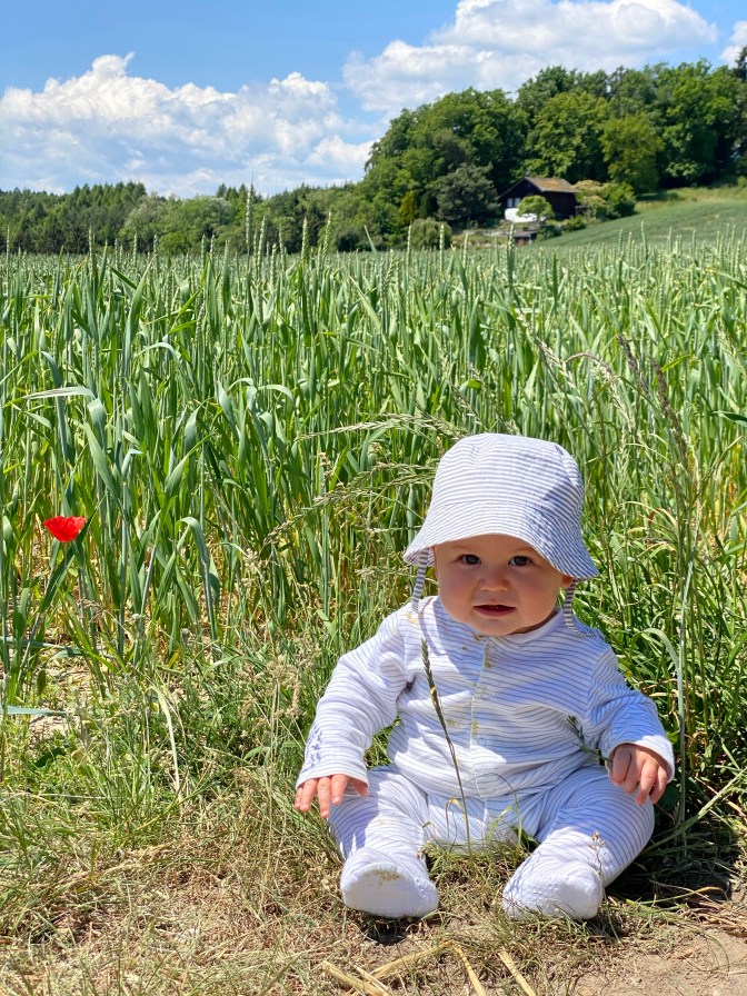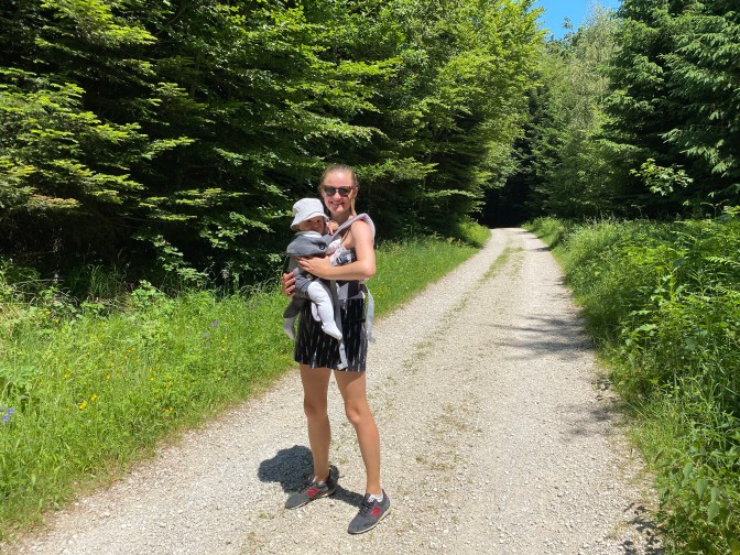 Jack had been snoozing on the train, but he woke up when we arrived into Yens. After a quick pit stop in some shade overlooking the vineyards, I fed Jack and then we began the walk to the forest. We love using the region du leman website and app to help us with navigation, but we found that although the walk was described as 4.5km in the wood, it failed to mention that there was a 3 – 4km walk to get to the woods! We didn’t mind this at all and embraced the longer walk, but it was very hot and exposed – good job we had suncream!