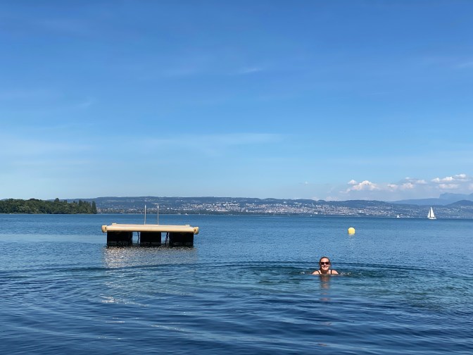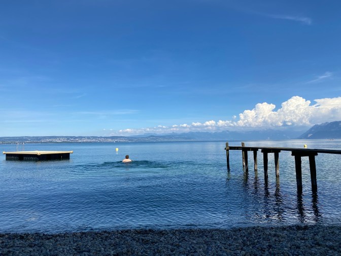 The beach is pebbly and the water is clear. There was even a platform to swim out to. We all enjoyed a swim in the lake. This was Jack’s first dip in Lake Geneva! It was such a beautiful, calm and peaceful setting. Perfect for families or just a lovely place to chill out and read a book!