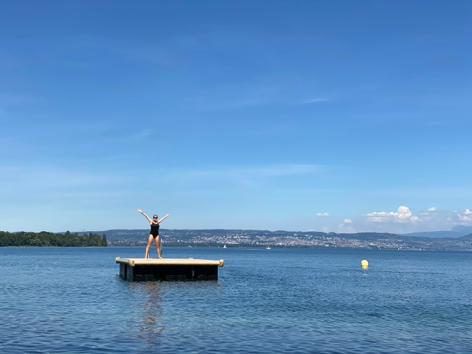 We love swimming in the lake. Luckily, there are so many beautiful spots along the lake shores of Lac Leman. We were keen to try somewhere new and we headed to the little village of St-Prex in Vaud (around 45 minutes on the train from Geneva).