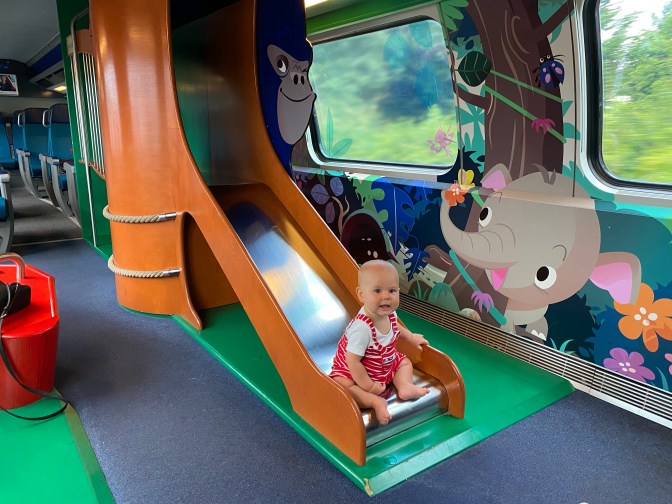 We took the train from Geneva to Bière, via Morges (1 hour & 11 minutes). Jack enjoyed the kids play area on the train, and the ticket inspector even gave him his own ticket!
