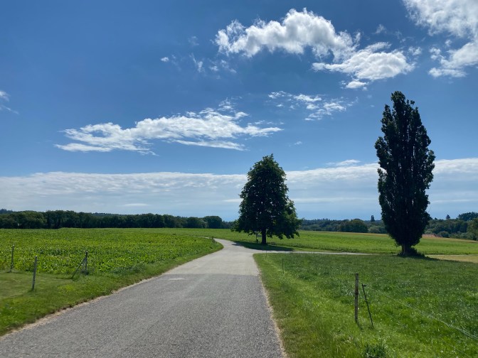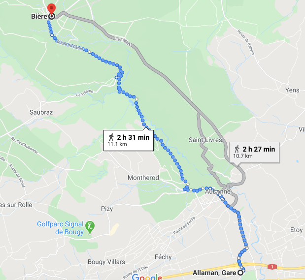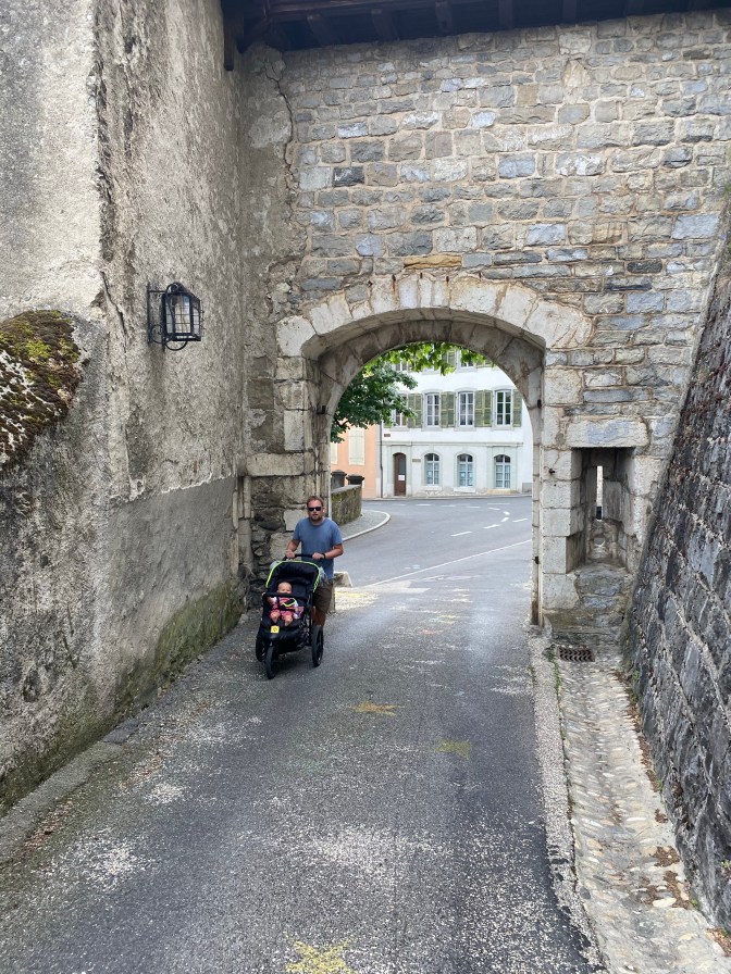 We decided to walk to Aubonne from here, and although there was a footpath marked, we didn’t want to risk it with the all-terrain pushchair, so we followed the small country road – Chemin de Plan, until we reached a bridleway called Chemin de Philosophes which led us into Aubonne.