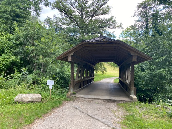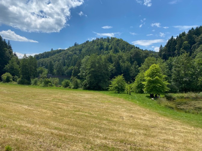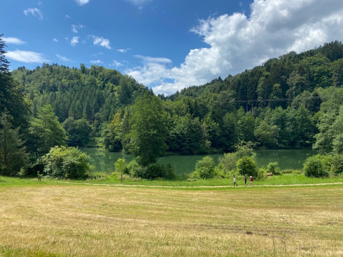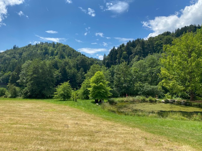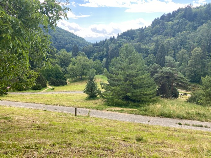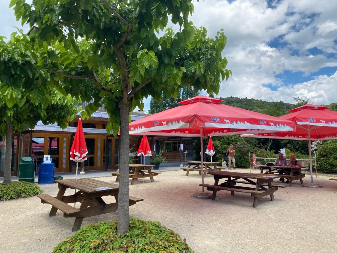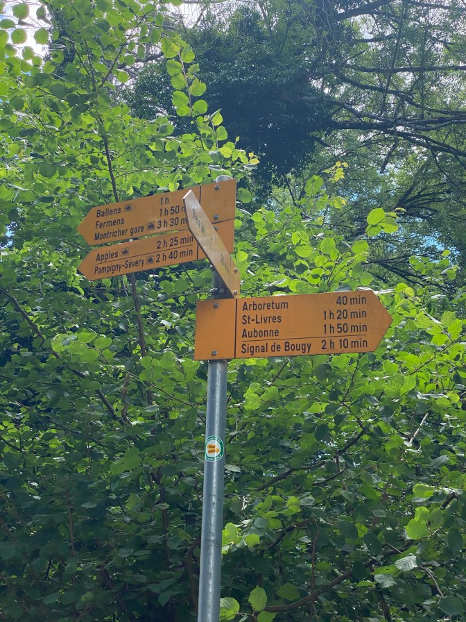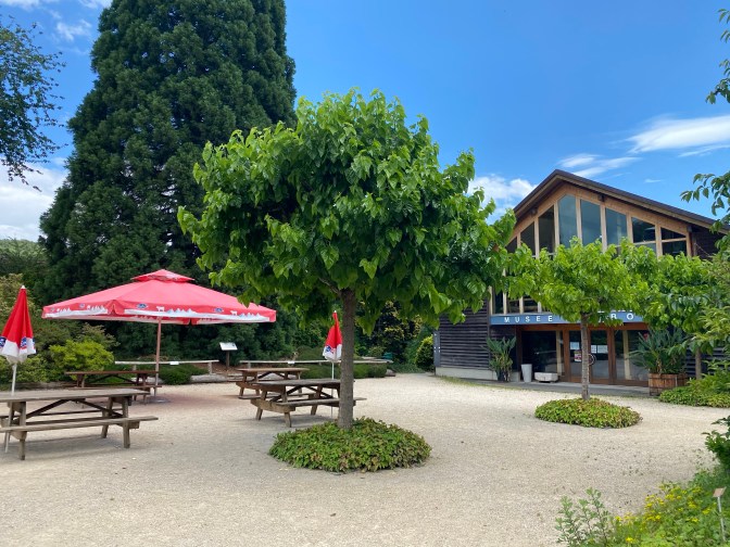 L’Arboretum du Vallon de l’Aubonne – what is this? We were not entirely sure what to expect, but as we descended into this beautiful area we discovered that it was a nature park where they preserve different types of trees. It had lots of clearly marked walks, a visitor centre and a cafe. There were information boards and maps and we had a lovely time exploring this area (and enjoying the shade from the trees). There were about 5 different trails with descriptions and signs in English and French.