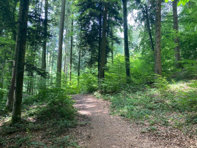 On arrival in Bière we found the Swiss walking yellow sign posts and followed the signs to Arboretum (just over an hour away). We had planned to do the first half of this walk, but instead of ending up in Yens, we wanted to end up in Aubonne, so we modified the route slightly. The beginning of the walk was quite exposed through fields, but it was easy walking with the all terrain pushchair and we enjoyed the scenery at the foot of the Jura mountains.