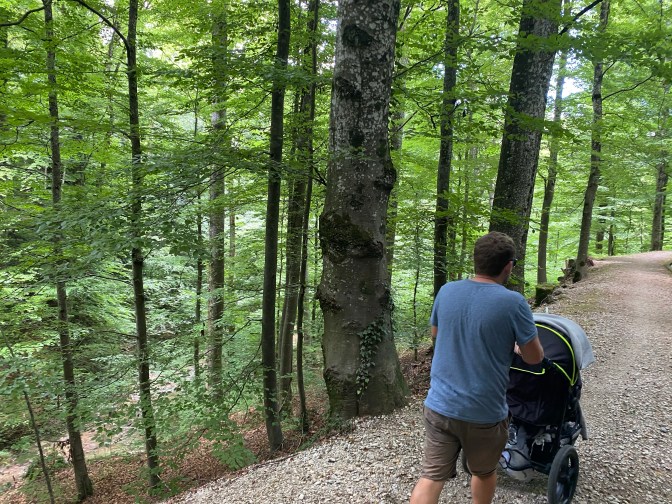 We ended up putting Jack in the ergobaby so that it was easier to manoeuvre the pushchair. The walk took us a little longer than we expected, but once we arrived at L’Arboretum du Vallon de l’Aubonne, the path was wide and all terrain pushchair friendly from that point on.