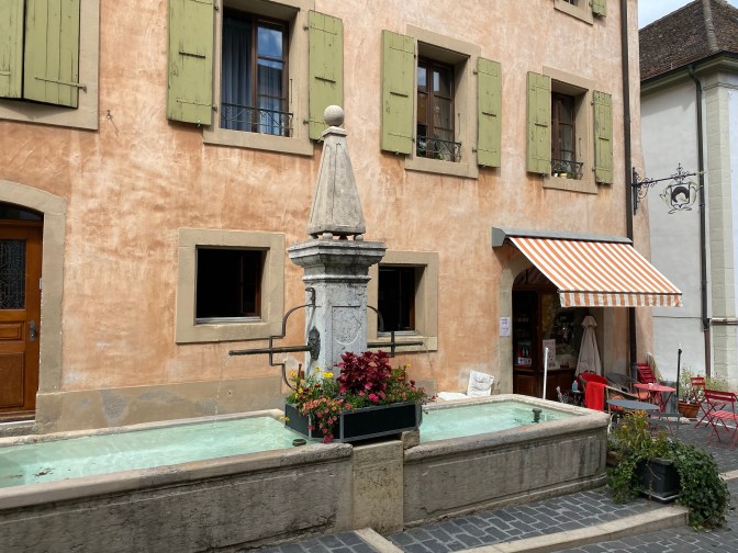 After a lovely swim, we walked into the beautiful little town of Aubonne. “Aubonne is easily recognizable because of its famous round and white tower that soars above the vineyards. Through the village, come to discover its magnificient alleyways and its historic edifices in a warm and animated atmosphere.” We had a wander around and then we tried some wine at Le Caveau des vignerons, underneath the castle in Aubonne. From Aubonne we walked to Allaman train station (30 minute walk) and took the 29 minute train back to Geneva.