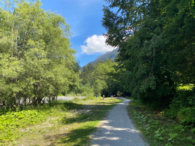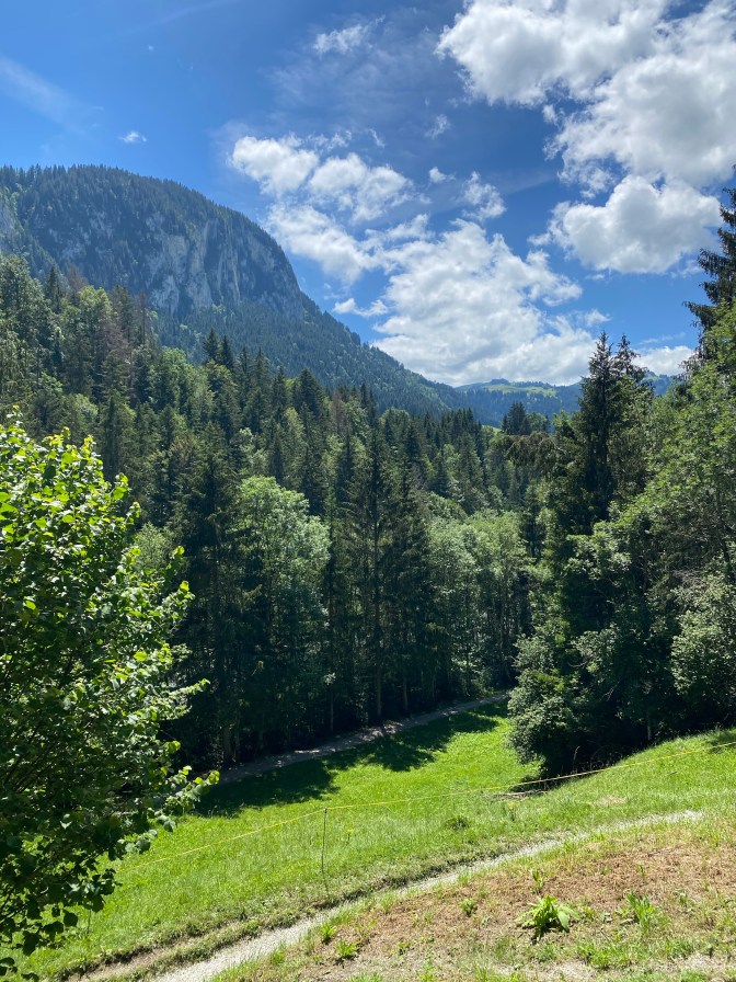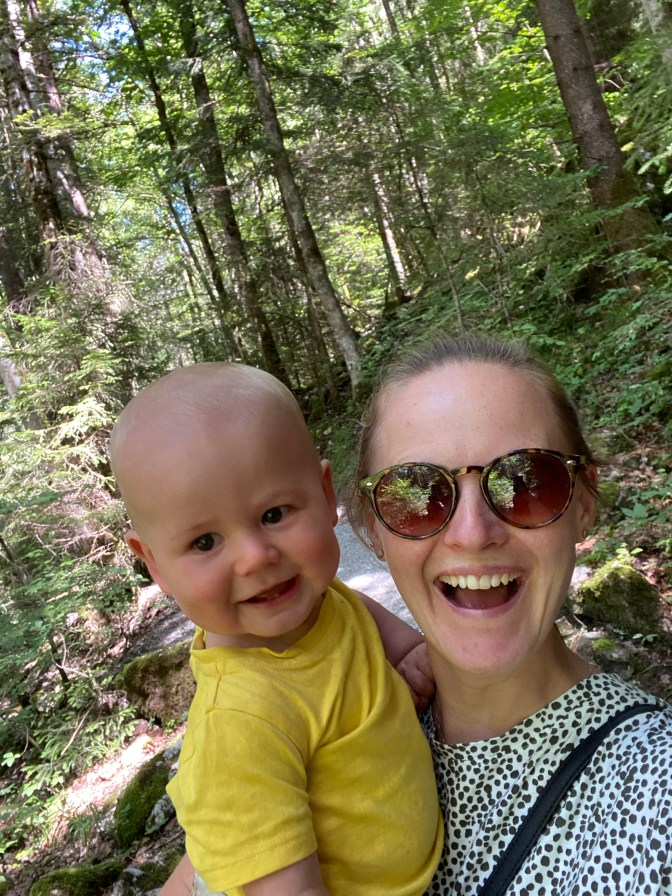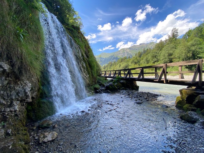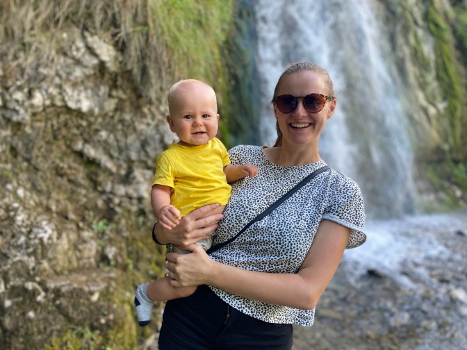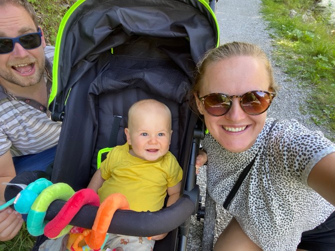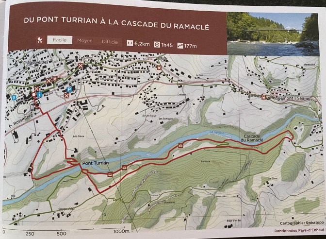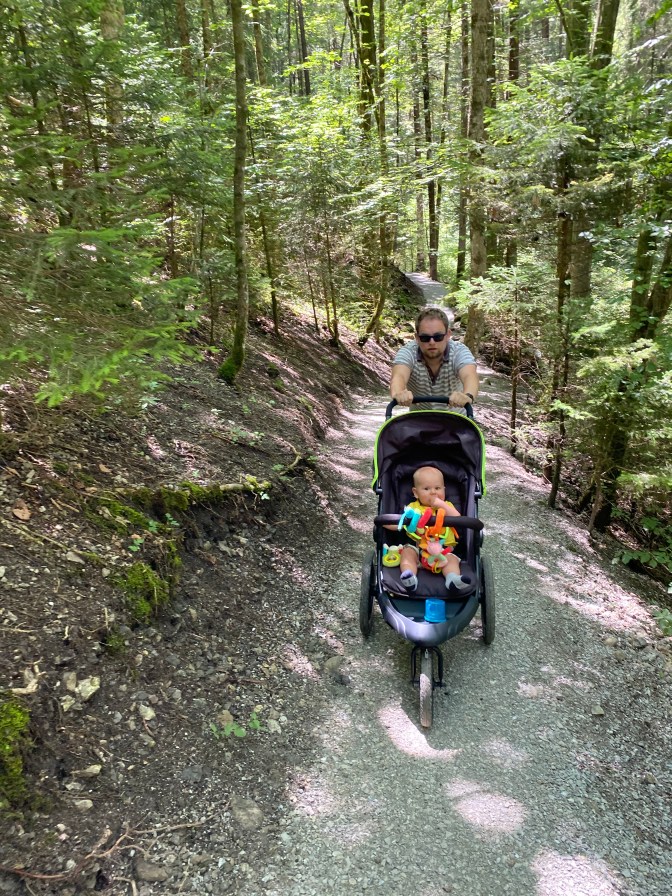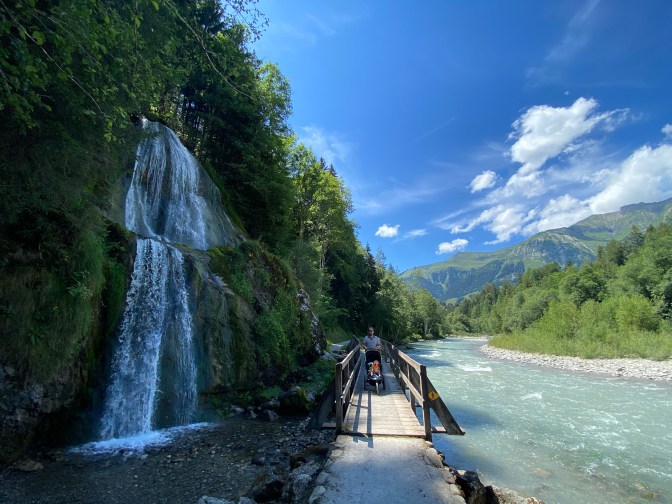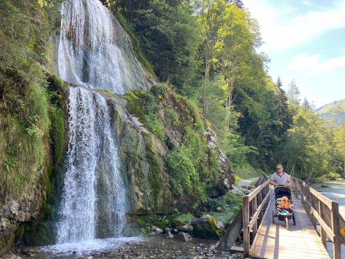 We used our all terrain pushchair and followed the path along the La Sarine river to the waterfall. The views were beautiful and the terrain was perfect for us. Jack enjoyed seeing his first waterfall!