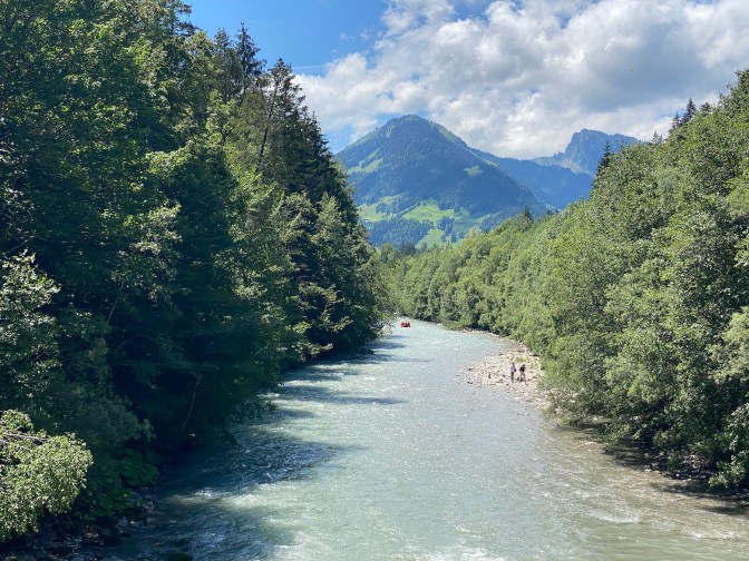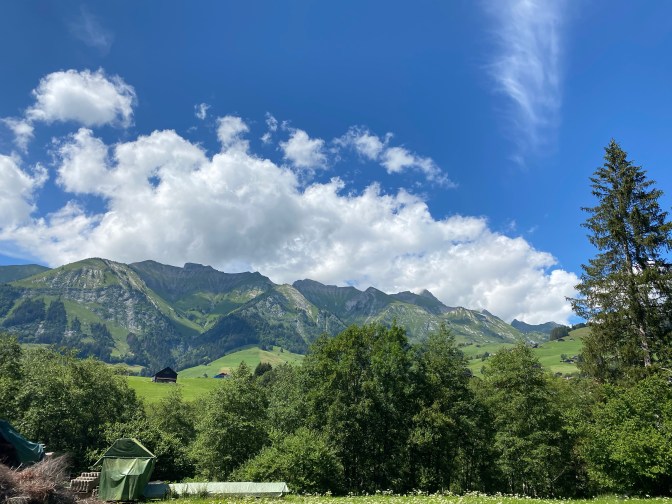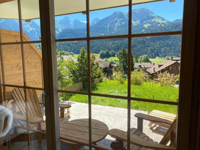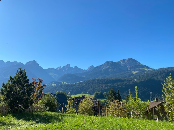 Our search for pushchair friendly hiking led us to the beautiful village of Château-d’Œx. Famous for it’s international hot air balloon festival every January, this village is the perfect setting for hiking, swimming and beautiful views all year round. Château-d’Œx is around 2 hours by train from Geneva in the Riviera-Pays-d’Enhaut.