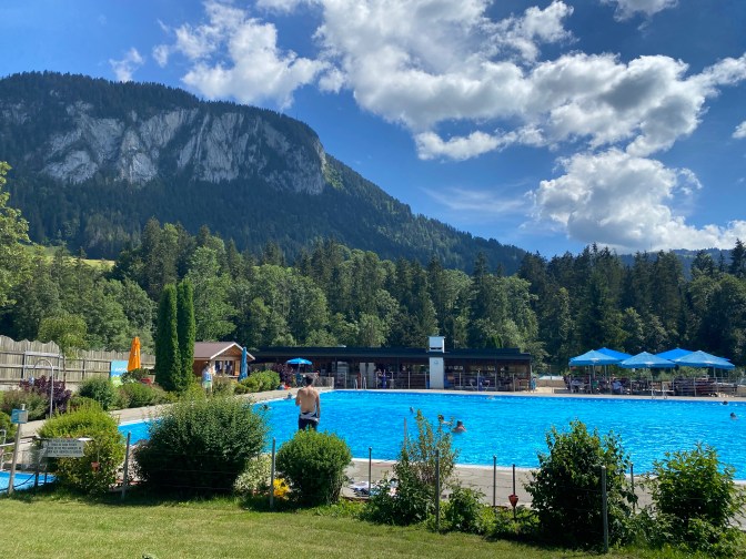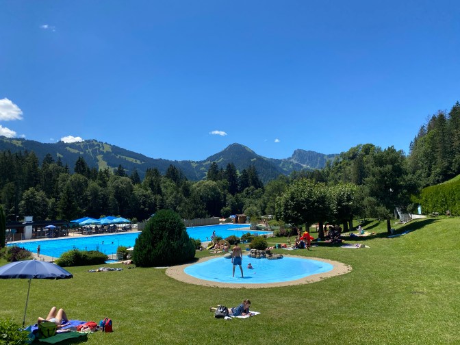 Since it was boiling hot, we decided to follow the path and keep walking along to Piscine du Berceau. The entry was 7 chf and we had a great time cooling off in the pool! There was also a little baby pool for Jack to enjoy!