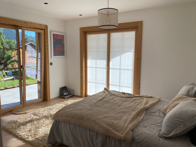 You could go for the day from Geneva, especially by car, but we decided to stay over for one night and we found a fabulous apartment in a chalet on airbnb with all the things you need for a baby: cot, high chair, games, toys and pushchair access.