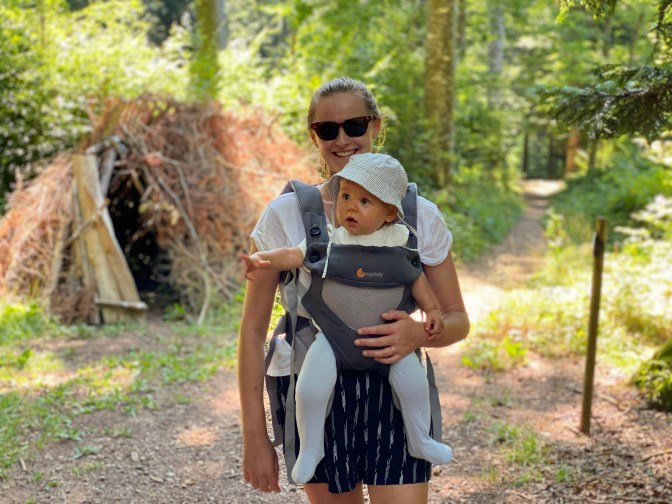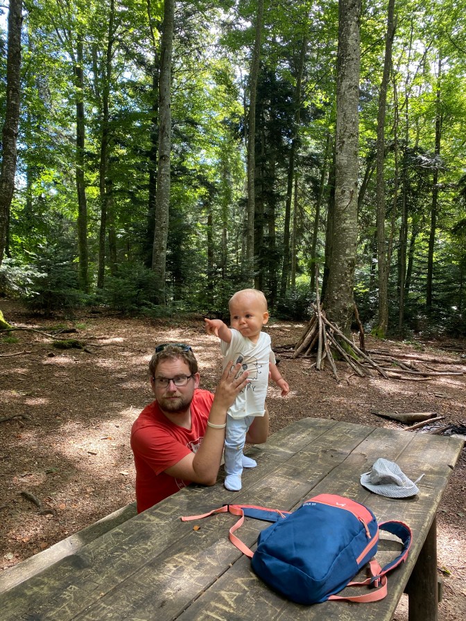 We had our pushchair with us, but we decided to leave it here (the cafe Couleurs Chocolat kindly let us leave it with them) while we went hiking. The hiking is very well sign posted, but it is important to remember that none of the routes are pushchair friendly. So, make sure you bring your baby carrier or backpack. We strapped Jack into the Ergobaby and followed the yellow hiking sign posts to Mont-Pèlerin.