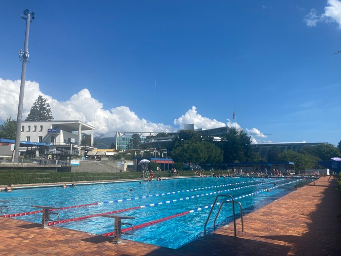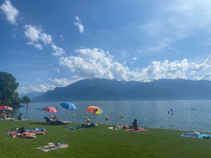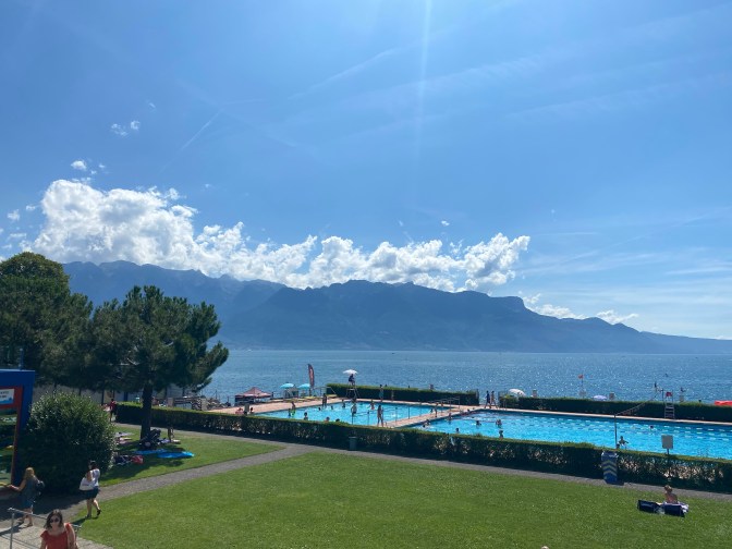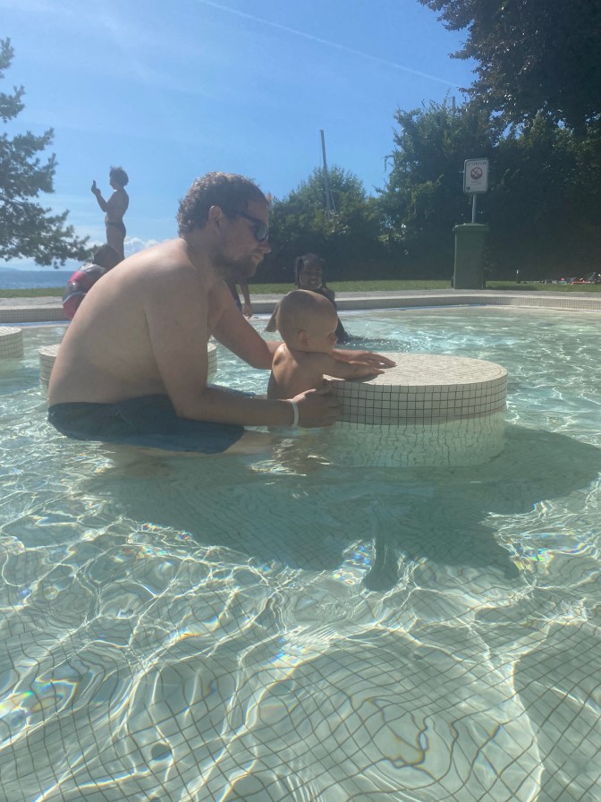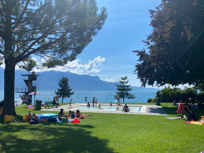 We were very hot and it was about 3pm by this point, so when we reached Vevey-Funi, we walked straight to Piscine Corseaux-Plage Vevey (which is only a 5 minute walk from Vevey-Funi). The entrance was 5 chf for an adult and this beach gives you access to the lake, outdoor pools and indoor pools (so you can even swim there in the Autumn/Winter months). There was a great ‘Pataugeoire’ aka baby pool for Jack, which he loved!